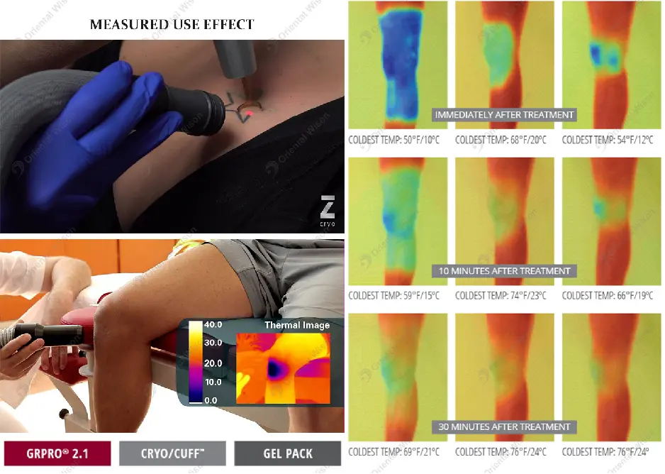 3) Les niveaux de refroidissement atteignent jusqu'à -35 ° C, permettant des traitements laser ou IPL efficaces et rapides à haute puissance.