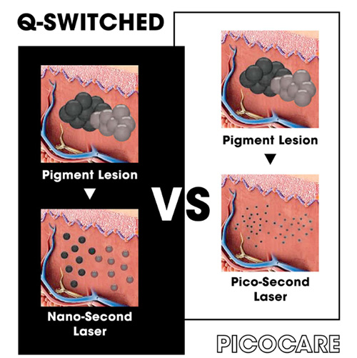 Cela signifie queLaser picosecondePeut offrir des éclats d'énergie plus courts et plus puissants, permettant un traitement plus rapide et plus précis. Pourtant, le laser ND: YAG à commutation Q peut fournir une gamme plus large de traitements de pigmentation.