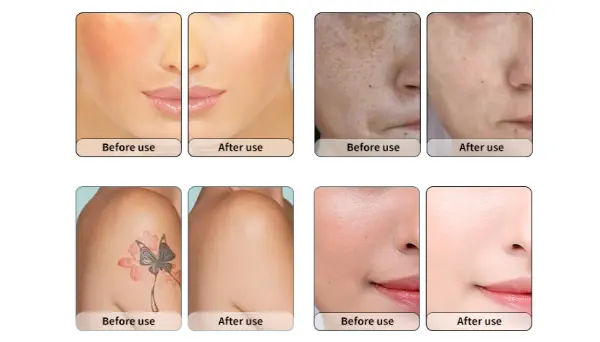 3. La largeur d'impulsion ne représente qu'un pour cent du laser Nd yag traditionnel, ce qui permet une élimination rapide et efficace de la pigmentation.