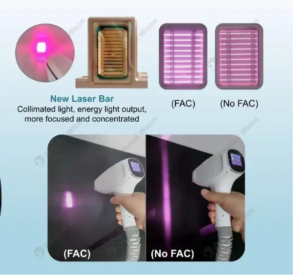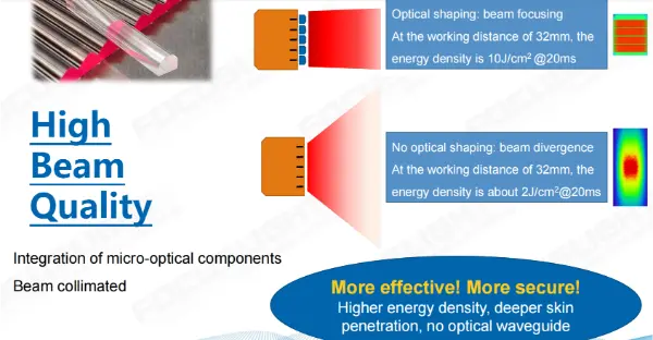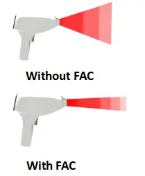 Densité énergétique plus élevée: FAC focalise le faisceau, garantissant que près de 99 % de la puissance atteint le follicule pileux plutôt que de se disperser.