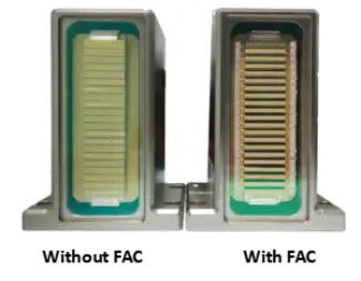 Les lasers à diode sont généralement inefficaces en raison d'une divergence asymétrique élevée, en particulier dans l'axe rapide. La technologie FAC résout ce problème en plaçant une lentille cylindrique à haute ouverture numérique (NA≈0,8) directement devant l'émetteur laser, créant ainsi un faisceau collimaté de haute intensité.