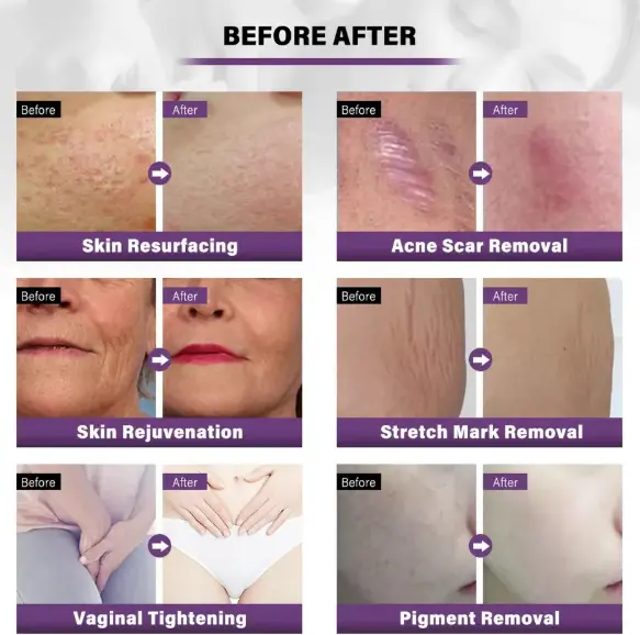 - Composé avec le laser CO2 fractionnaire traditionnel, ce modèle a une production d'énergie constante et des résultats de traitement spectaculaires. De plus, vous n'avez pas du tout besoin de changer le tube CO2.